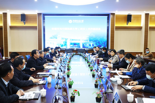 武文罡介紹安康情況并感謝學校對安康富硒產業持續健康發展做出的重要貢獻和對安康城市建設的支持。他表示,安康在“十四五”期間,迫切需要人才、科技和項目支持,希望與地大在富硒資源開發利用、科研平臺建設、科技成果轉化、城市規劃建設、地質災害防治、水資源保護等領域展開產學研合作,并建立長期全.面的戰略合作關系。