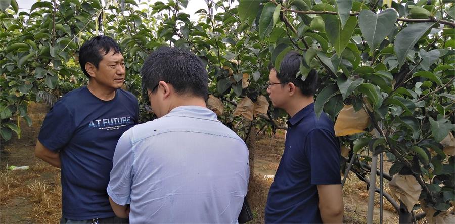 在寧晉縣,雨佳果樹種植專l業(yè)合作社負(fù)責(zé)人霍總向羅總和于總一行詳細(xì)介紹了果園品種分布,分批上市時(shí)間。雨佳合作社是該市智慧農(nóng)業(yè)應(yīng)用示范點(diǎn),產(chǎn)品多次獲得京津冀果品爭(zhēng)霸賽金獎(jiǎng)。在霍總的帶領(lǐng)下,雨佳合作社在通過歐盟質(zhì)量認(rèn)證體系基礎(chǔ)上又與中國(guó)地質(zhì)大學(xué)(武漢)國(guó)際硒科學(xué)與產(chǎn)業(yè)發(fā)展研究院合作,將有機(jī)、富硒、酵素三效合一,研發(fā)了富硒梨果產(chǎn)品,已經(jīng)連續(xù)兩年獲得第三方機(jī)構(gòu)的“富硒產(chǎn)品認(rèn)證證書”。去年有200余mu富硒梨果被香港某大型超市提前批量訂購(gòu)。非常巧合的是,今年香港客商也在同一天來到了霍總的富硒梨基地,商定今年的采購(gòu)計(jì)劃。